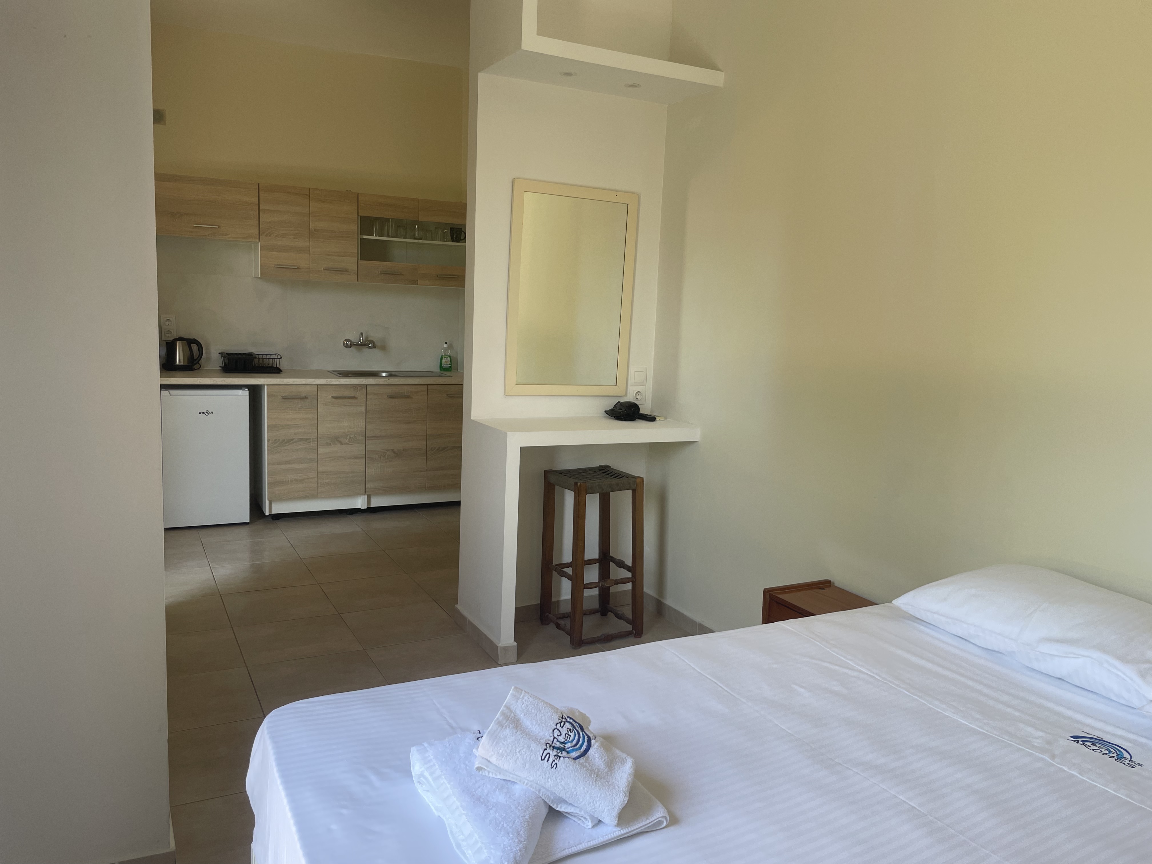 This double one bedroom apartment with kitchenette, offers private balcony with a garden view, here you can enjoy your stay in total privacy with the company of your choice. Whether you decide to travel alone or share it with someone special, here you will find the peace and quiet you are looking for to rest and recharge your batteries. The important thing is that you feel at home.