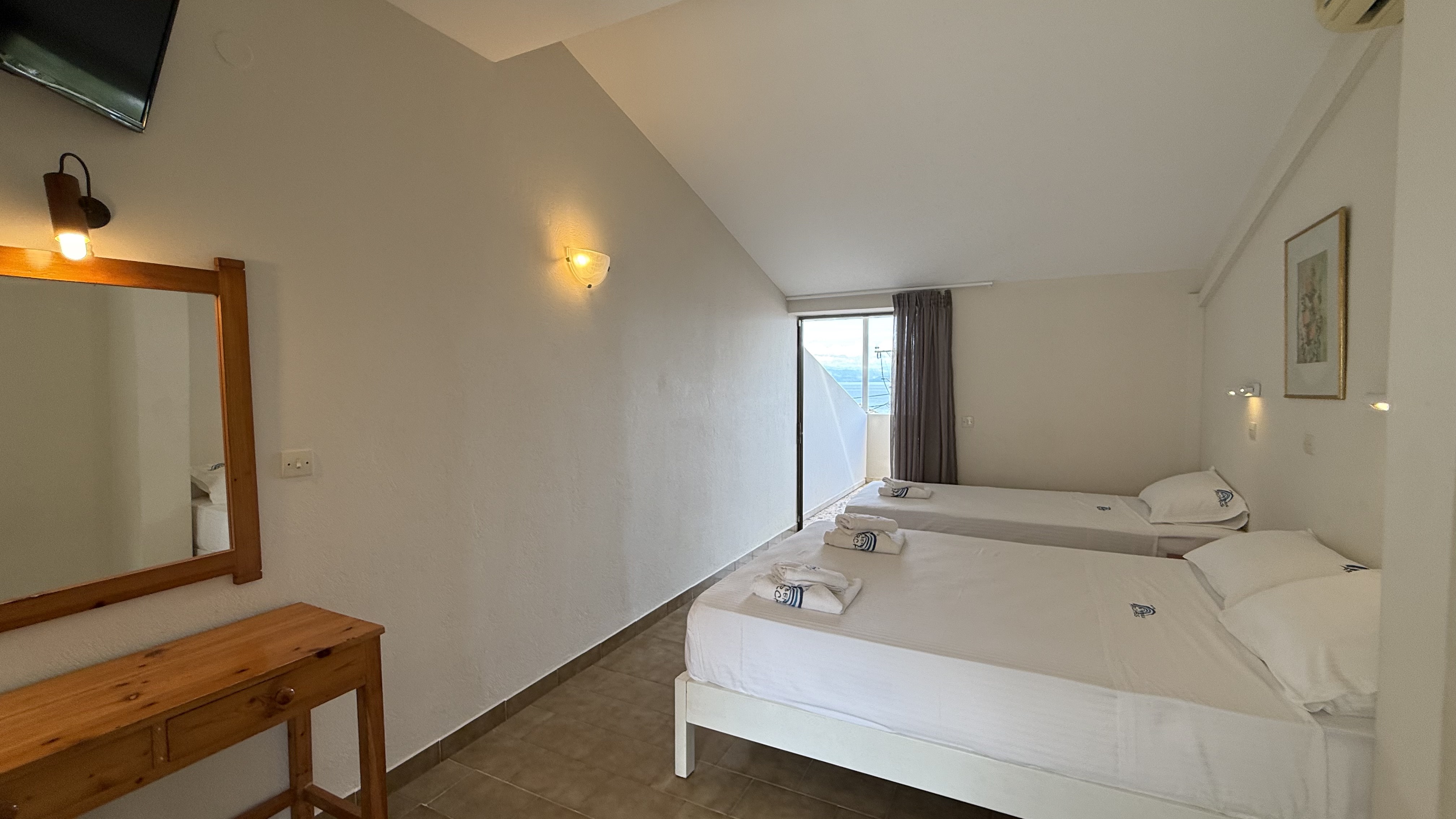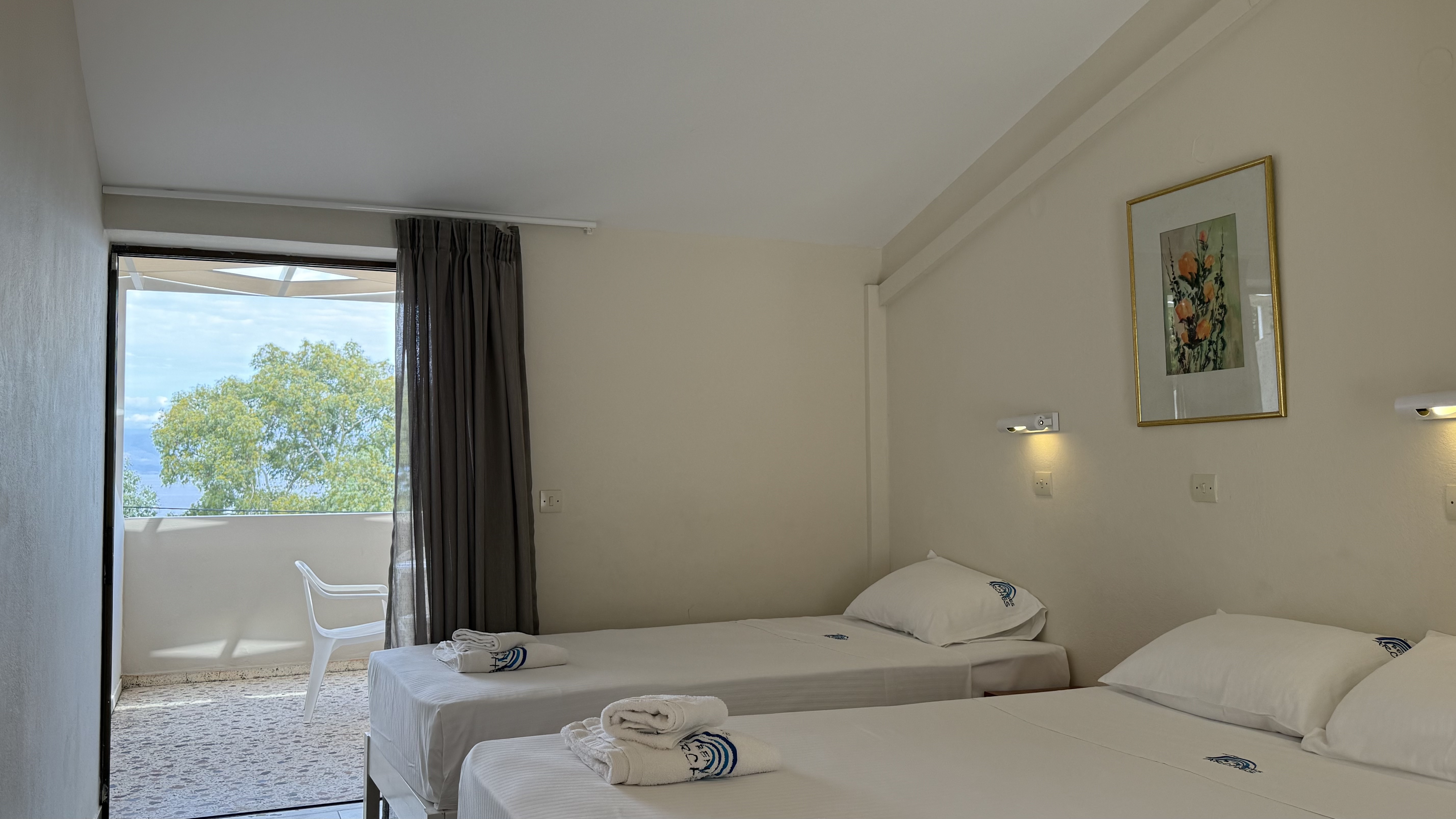 Perfect for families, filled with natural sunlight, this spacious room offers enough space for everyone to be comfortable, relax and enjoy sea views  from its large private balcony.